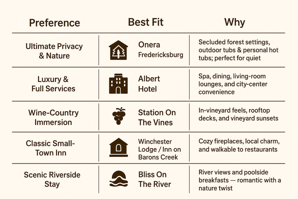 The Hill Country scenery rolls out in soft waves, Main Street buzzes with that warm, small-town hum, and the wineries sprinkle a little romance into the air without even trying.