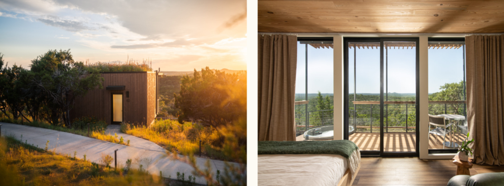 The Greenhouse leans into nature without sacrificing comfort. A vegetated rooftop blends into the surroundings. Floor-to-ceiling windows frame the Hill Country like artwork. Inside, you will find:
