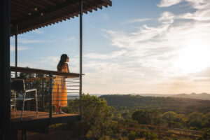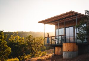 Elevated deck off the front of the earth home for dining, soaking, yoga, stargazing, wildlife watching